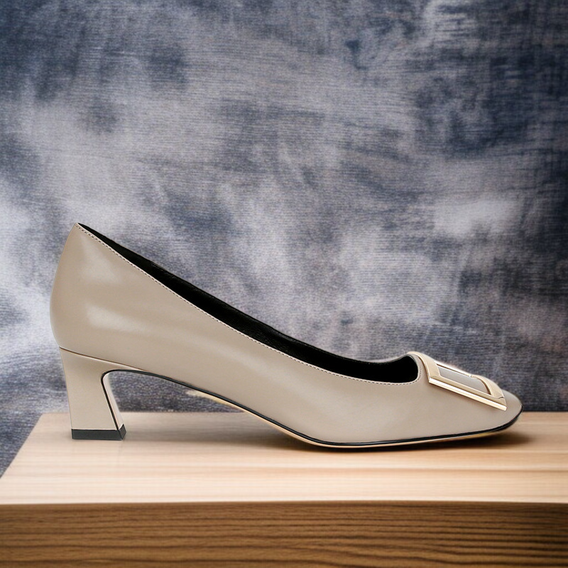 ● 세련된 말굽 스퀘어힐 디자인으로 어떤 코디에도 잘 어울리며, 스타일리시한 출근룩을 완성해줍니다.